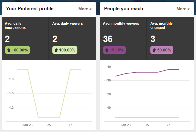 I set up a Pinterest account at the end of 2017, and I’ve been casually poking around on it each week. I created a Business type account for my author profile, which means Pinterest gives me some basic analytics for free!
