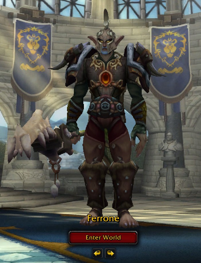 Ferrone wasn’t the first character I created in WoW, but he was the character through which I really got to know this world. He’s a Night Elf Druid, currently level 100, which was the level cap when I last played.