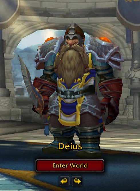 This here is my other favorite character, a Dwarf Paladin. Dwarves are by far the coolest race in WoW, and I will not be convinced otherwise. If Dwarves could be druids, you bet I would have 10 of them. Deius is level 87 or so, and he’s the next character I want to get to level cap.