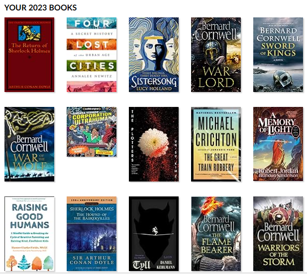 - 6 novels from The Last Kingdom series, which I finished in 2023